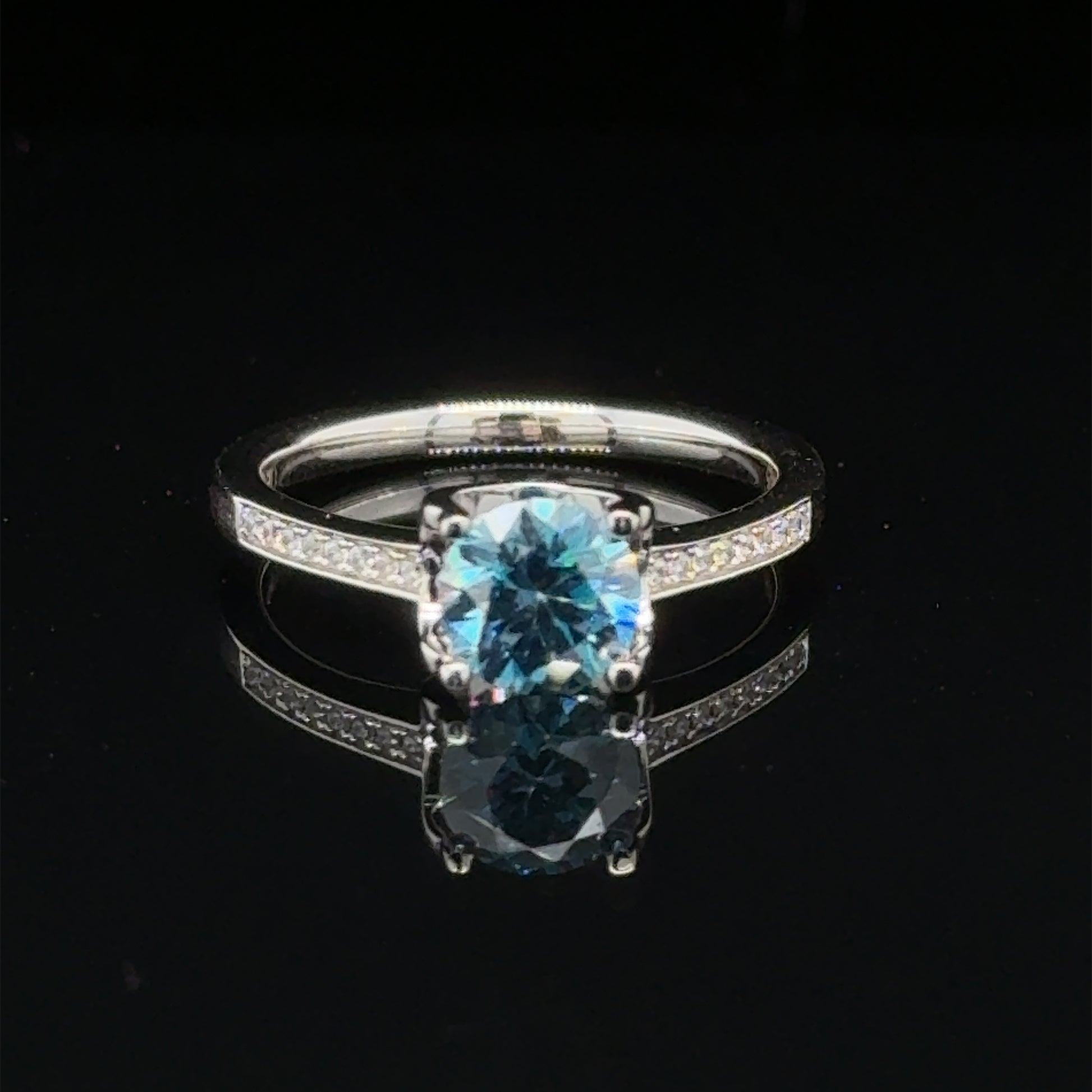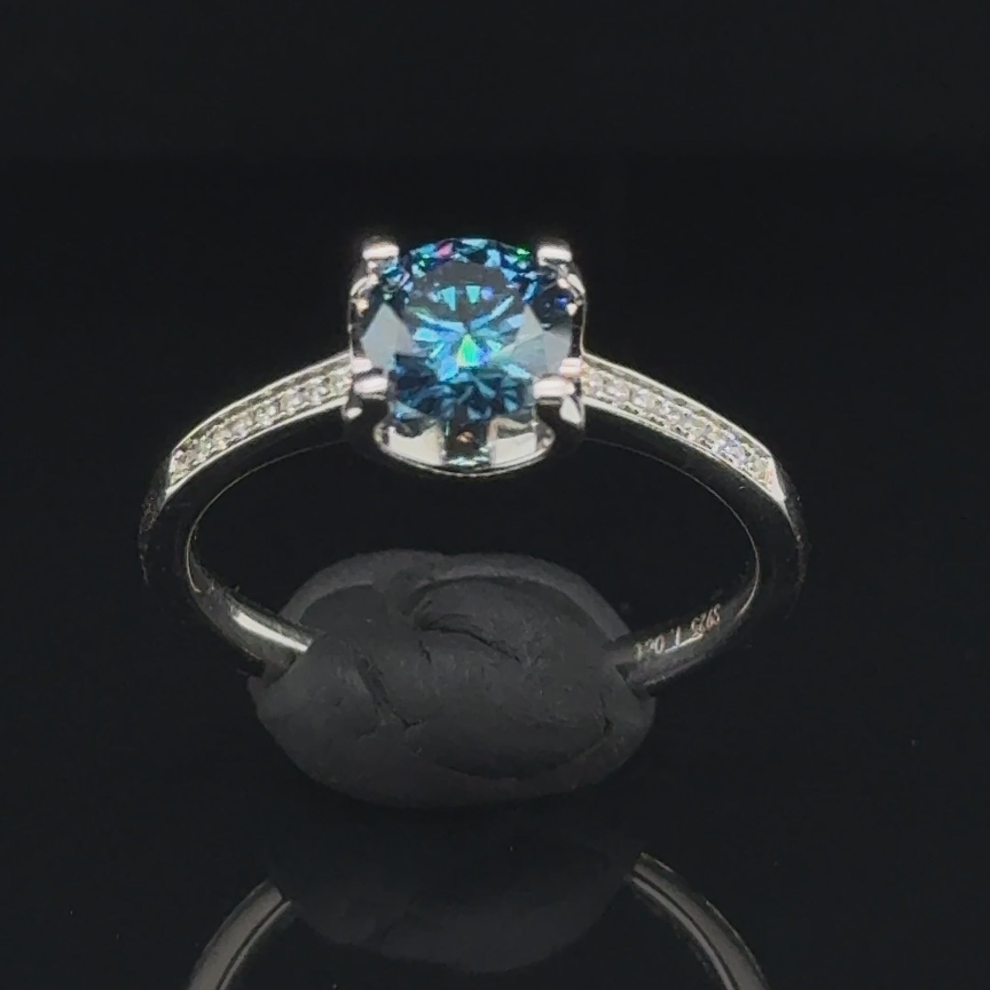 Blue Lake Moissanite Diamond Ring, Sterling Silver