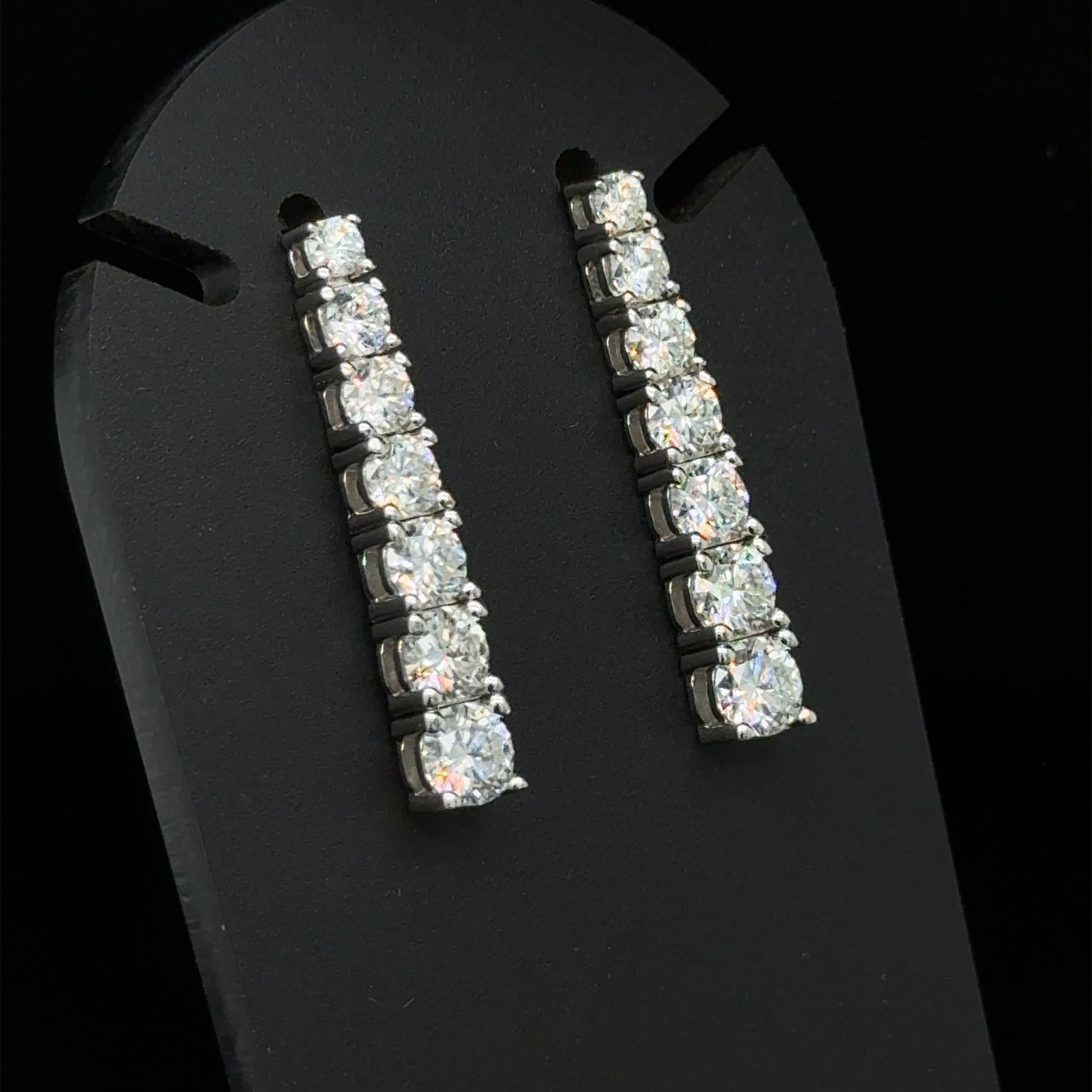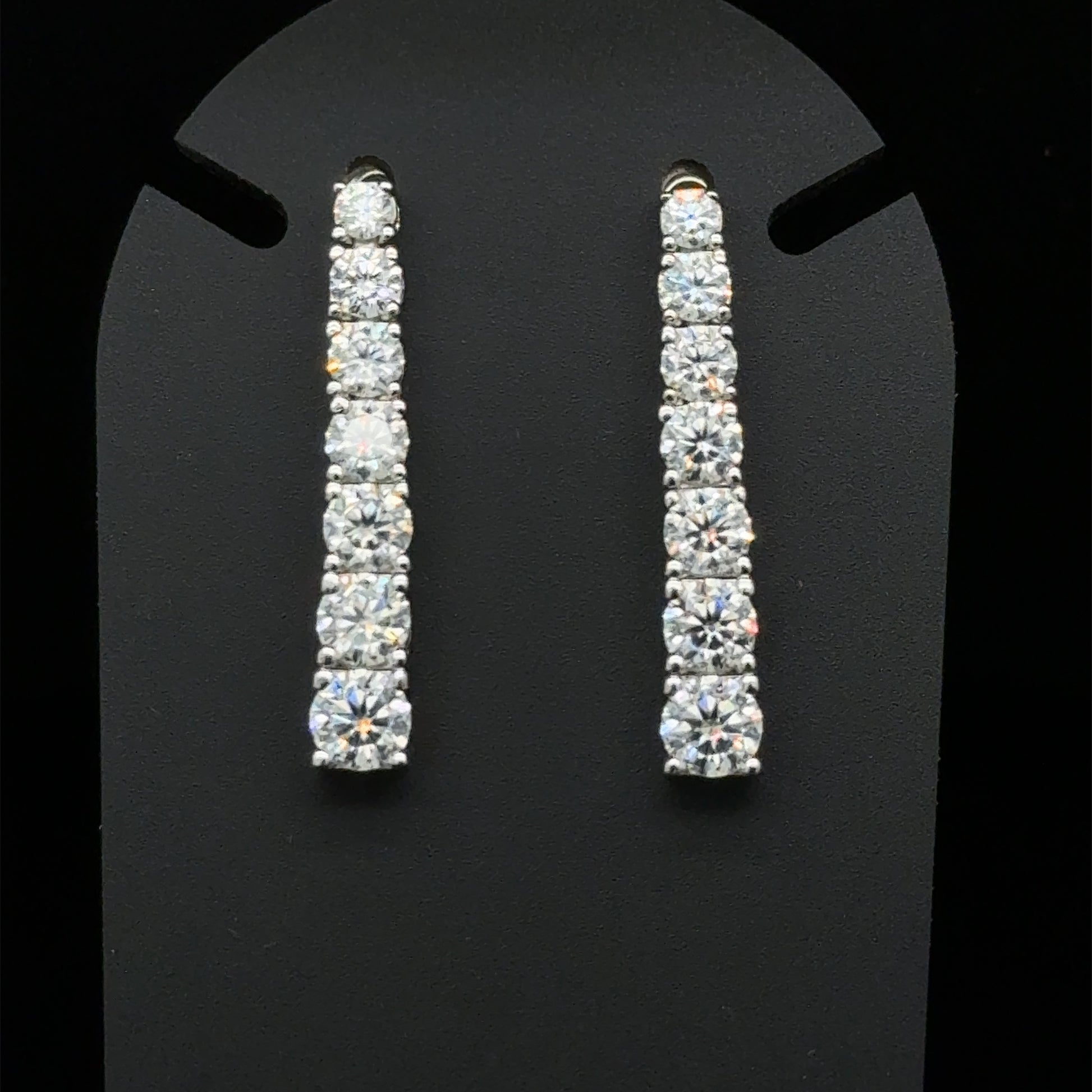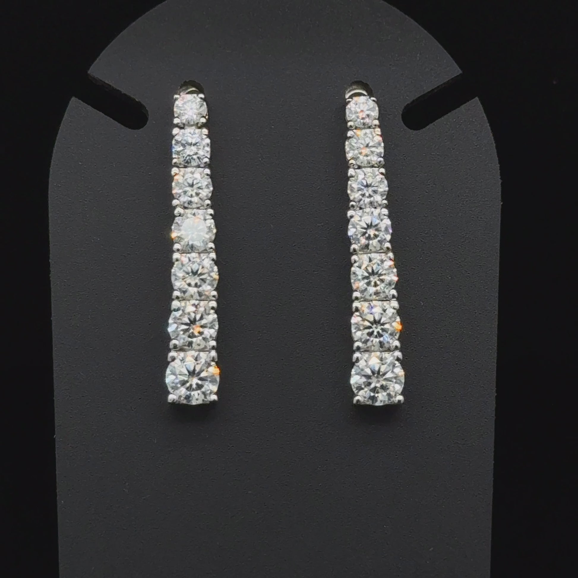 Introducing these stunning Graduated Drop .925 sterling silver earrings, meticulously designed with elegance and sophistication in mind. Each earring features seven sparkling moissanite diamonds, perfectly aligned and gradually increasing in size to create a beautiful graduated effect. Moissanite, the ethical and dazzling alternative to natural diamonds, offers unmatched brilliance and fire.