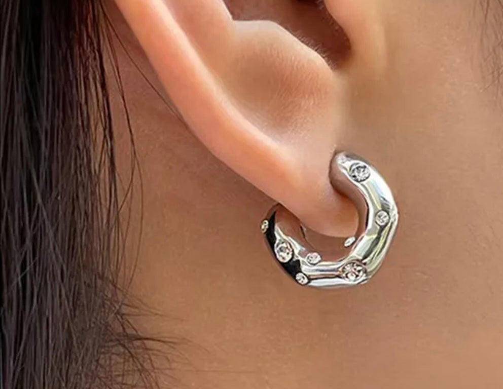 Introducing our HP Stainless Steel stud earrings, a dazzling addition to your jewellery collection. These earrings exude elegance with their sparkling rhinestones intricately inlaid into the stainless steel. Whether you're attending a special event or simply adding a touch of glamour to your everyday attire, these earrings are sure to make a statement.