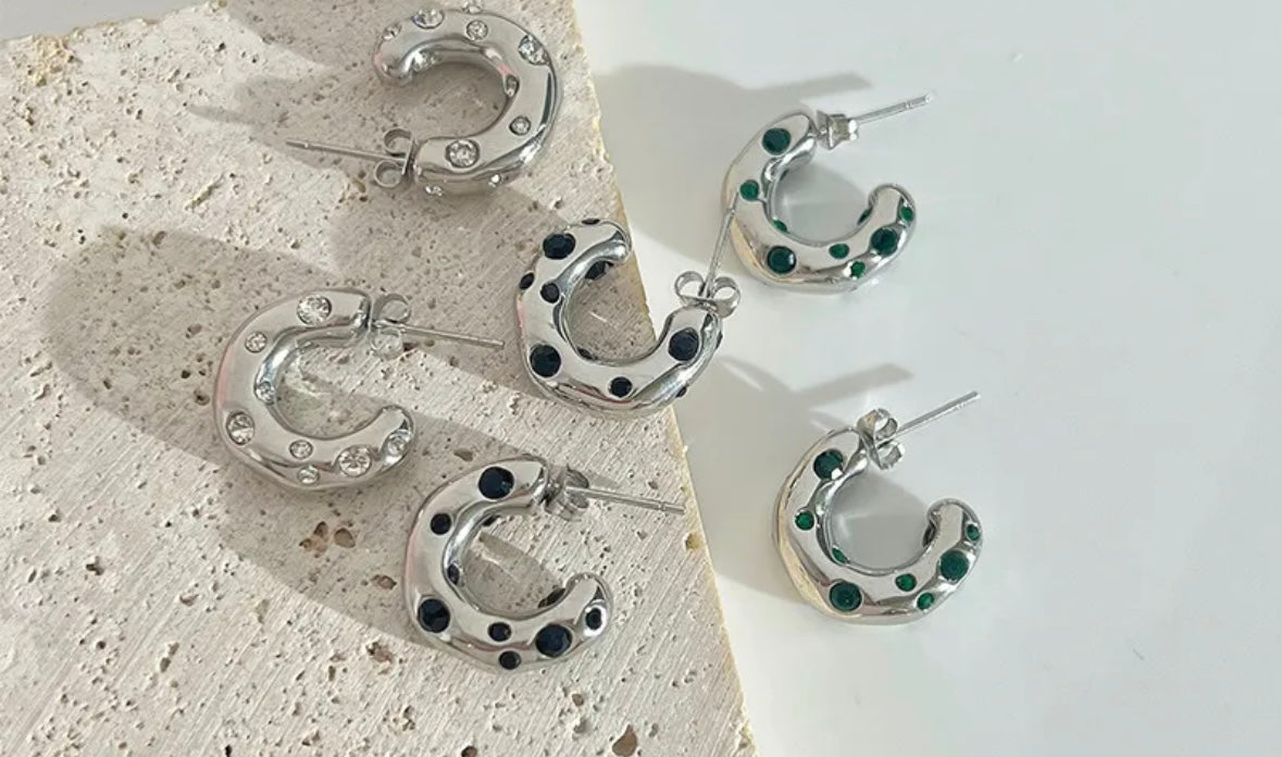 Make a bold fashion statement with our HP Stainless Steel stud earrings. Whether you're dressing up for a night out or adding a hint of sparkle to your everyday look, these earrings are sure to turn heads and elevate your style.