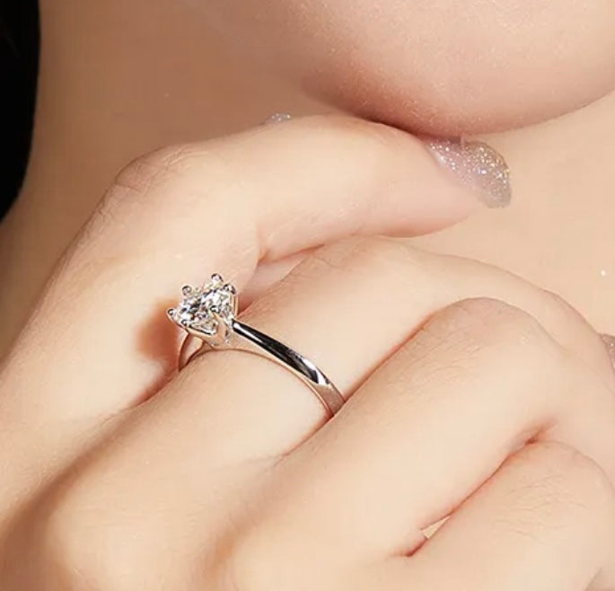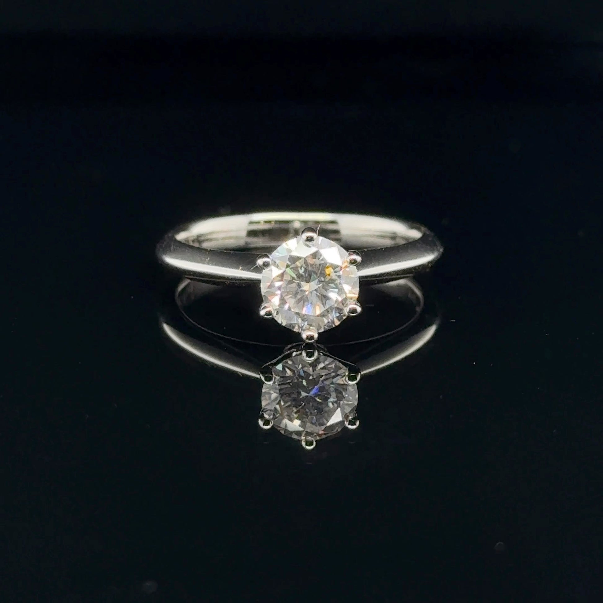 The classic elegance of this sparkling, sterling silver, Marilyn White Diamond ring catches the light from its many facets, promising to add a touch of glamour to any outfit. The shape and cutting style is round brilliant and is 1.0 carat in weight. The diamond is Moissanite which is an ethical alternative to natural diamonds and are produced in an environmentally friendly way. The ring comes with a certified GRA Report and a 12 month warranty. Each diamond has her own GRA Report number.