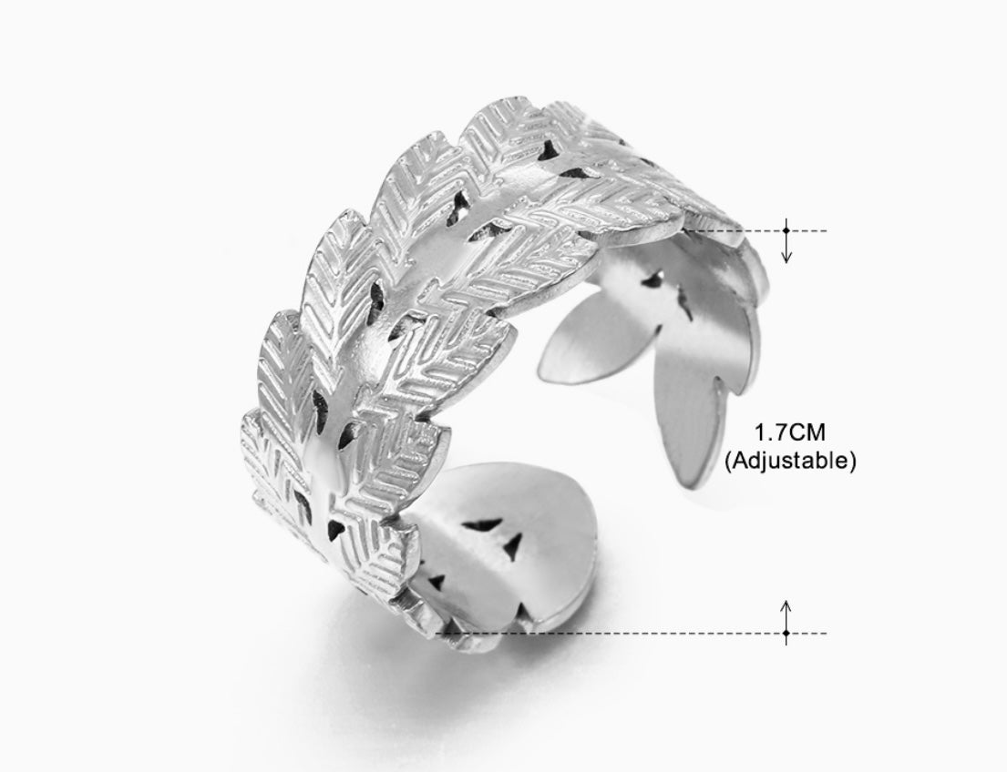 Silver Leaf Ring, Stainless Steel