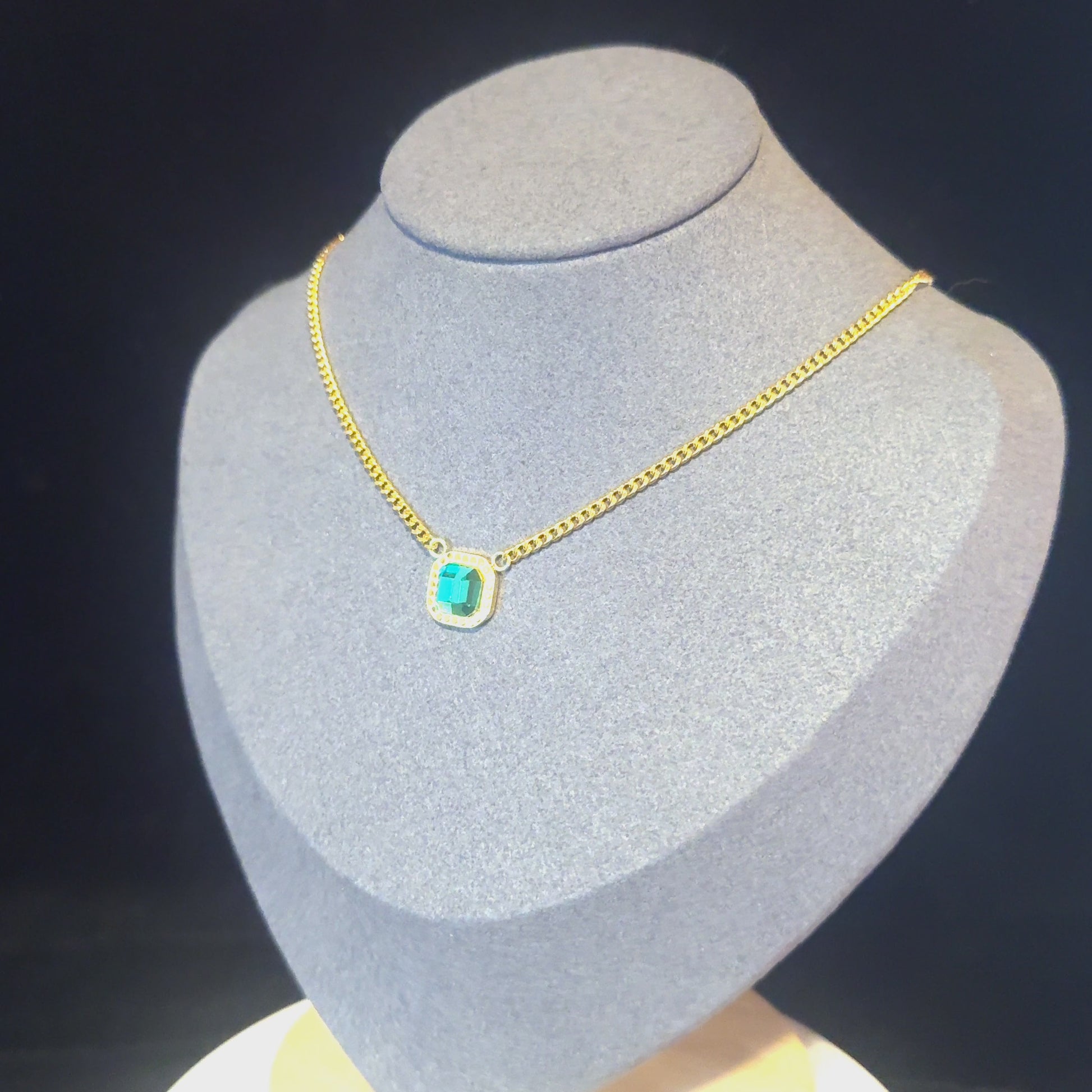 SALE The Emerald Pendant Necklace, Stainless Steel 18K Gold Plating